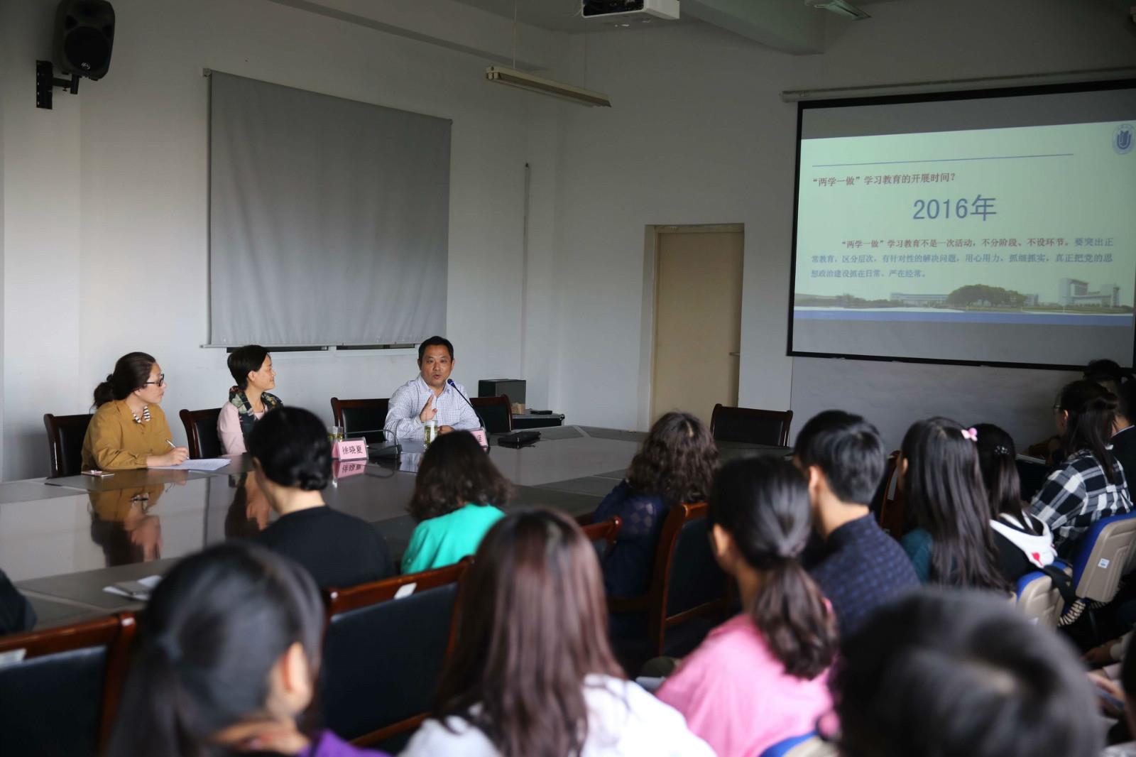 2016年10月10日下午,数码艺术学院全体师生党员齐聚数码A417会议室,开展两学一做”专题学习教育,特邀德赢官网宣传部部长李坚进行“不忘初心继续前行”——解读习近平总书记七一重要讲话精神学习的专家讲座。学院党委书记陈大明、副书记徐晓夏对李坚部长的莅临表示热烈欢迎,学习活动由副书记徐晓夏主持。
