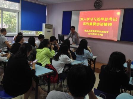 10月8日12:00,德赢ac米兰官方合作vwin悉尼工商学院学生党总支在文博楼开展“两学一做”之习近平总书记系列重要讲话精神的学习。此次学习分为四部分,分别为:吴明龙老师针对习近平总书记讲话的总结,观看视频《浦江先锋》,学生讨论并发表见解以及李玲老师对此次学习进行总结。