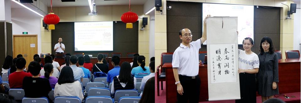 在讲座结束之后,社区学院课外培养中心的助理送上了一副由德赢ac米兰官方合作vwin书法社的同学为孙教授量身定做的书法作品。孙教授的讲座虽然只有短短的一个半小时,但他却教会了同学们该如何管理我们的人生,相信参与讲座的每位成员都从中受益匪浅。(文/姚煜 图/张弛)