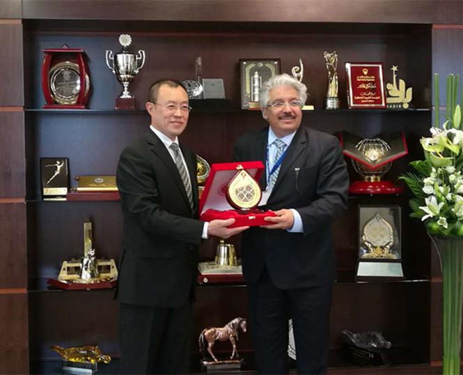 20日抵达当天,巴林大学校长瑞雅德教授专程接见了邹宗峰博士,并赠送了巴林大学校徽,对德赢ac米兰官方合作vwin的支持及巴林孔院所做的工作表示了感谢。随后,邹宗峰博士在孔子学院院长吴雪颖博士的陪同下参加校长瑞雅德教授亲自主持的招待宴会。