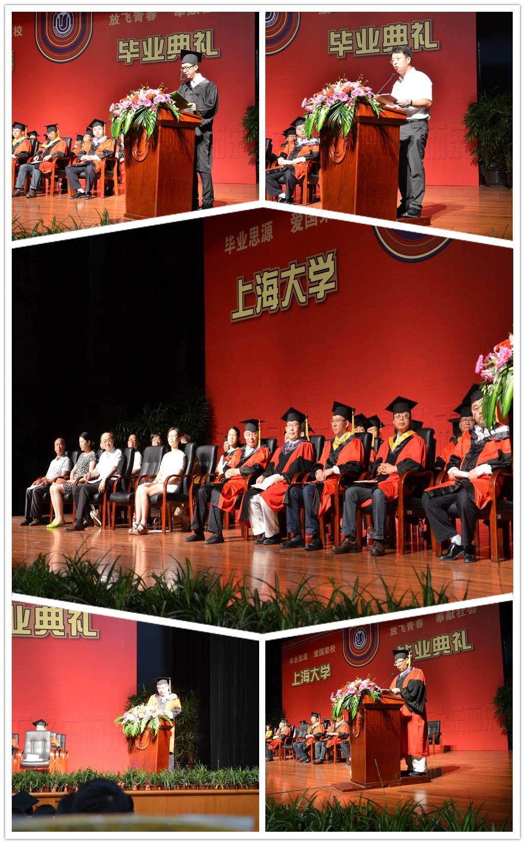 接下来的环节中,2016届优秀本科毕业生代表王进同学代表全体毕业生回忆了自己在上大的青葱岁月并抒发了自己毕业的激动之情,表达了对上大、学院、对老师的感激与不舍,也表明了毕业生们在今后的生活和工作中,努力做到敢于创新,勇于突破,把德赢官网精神发扬光大的心志,最后送上了对同届的毕业生们和老师们的祝福。