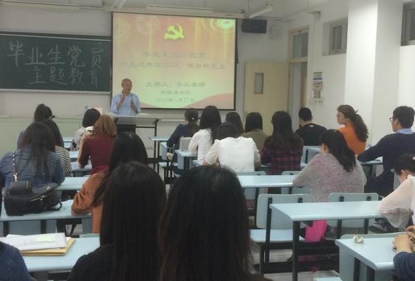 5月27日星期五下午,外国语学院“向先进典型学习,做合格党员”毕业生党员教育活动顺利举行。特邀党建组织员安山老师为我院2016年即将毕业的全体学生党员做一场生动的思想教育报告。学院党委副书记曾桂娥老师、研究生辅导员王杰老师出席了本次学习活动,会议由邹琴老师主持。