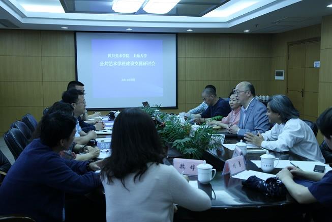 5月26日下午,四川美术学院党委副书记左益、公共艺术学院副院长郭晏驎一行7人赴德赢ac米兰官方合作vwin美术学院调研交流。德赢ac米兰官方合作vwin党委副书记、副校长徐旭,德赢ac米兰官方合作vwin美术学院院长汪大伟、美术学院副院长陈青、公共实验艺术技术教学中心黄建平、设计系主任董卫星、建筑系主任刘勇及学院综合办主任宋国栓等相关工作人员与来宾在宝山校区行政楼803会议室召开了“公共艺术学科建设交流研讨会”。
