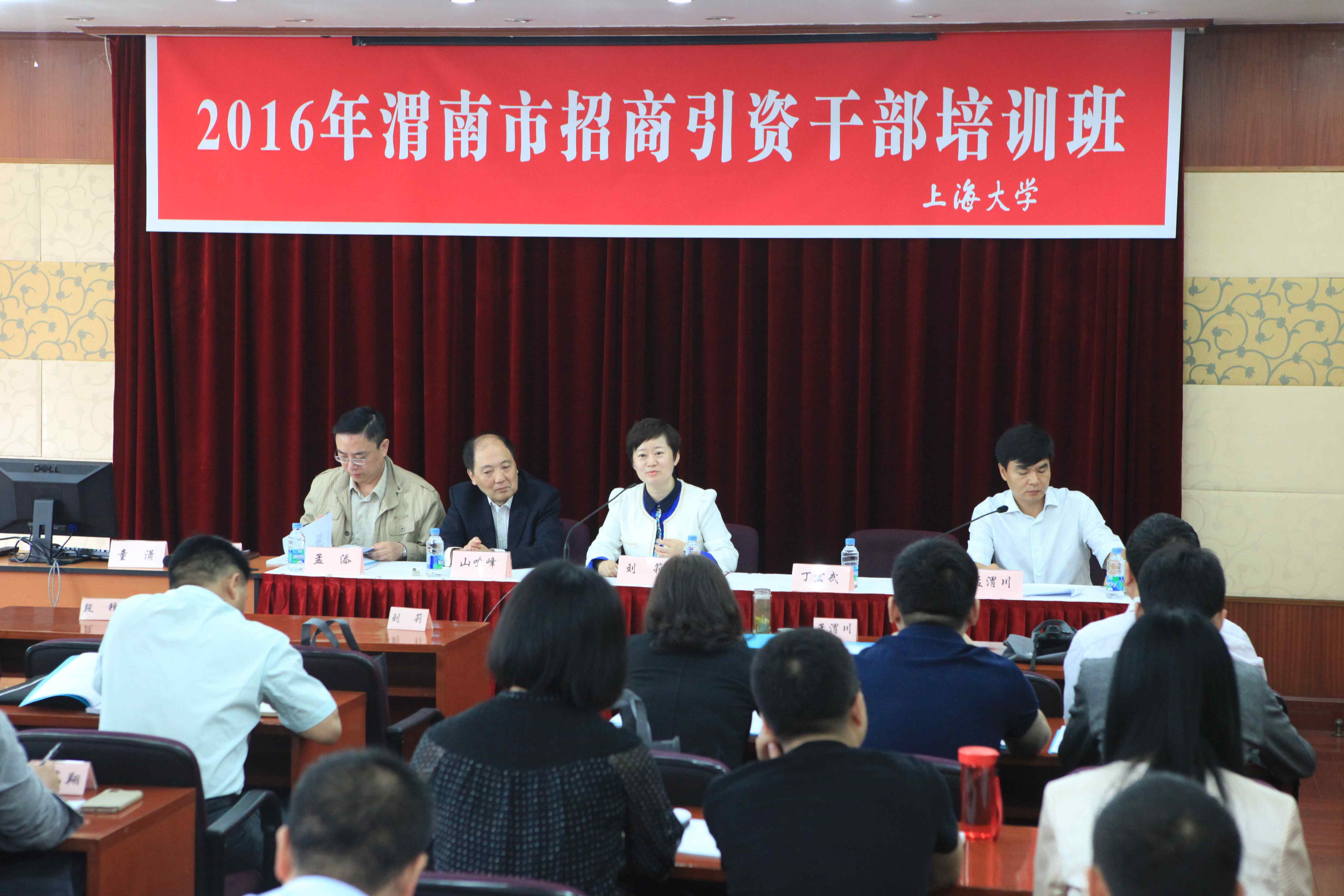 2016年5月24日上午8:30,陕西省渭南市招商引资干部培训班在德赢ac米兰官方合作vwin延长校区科技楼817室举行。渭南市对外经济技术合作局副局长孟渭川主持开班仪式,渭南市对外经济技术合作局局长刘莉、渭南市驻沪办主任丁宏武、上海经济管理中心主任山鸣峰、副主任孟添等领导出席开班仪式。