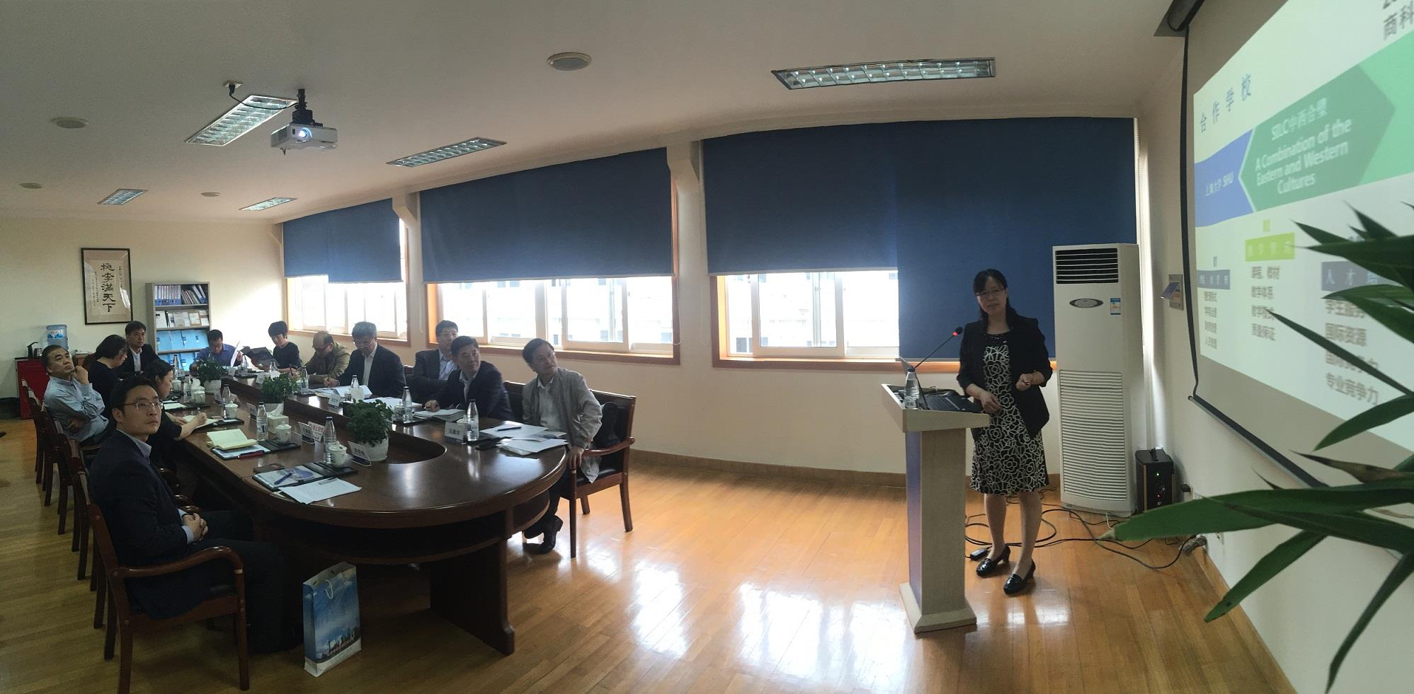 现场汇报会在文荟楼409室举行。常务副院长吕康娟首先结合PPT,详细介绍了学院历史、现状和未来发展等学院综合情况。在答辩交流环节,评估组专家根据前期学院送交的示范性评估自评报告和吕院长的现场汇报,对于学院如何保证外方教师和教育资源在办学中的参与比例(即所谓中外合作办学的“四个三分之一”)、外方如何有效参与学院的教学与管理等中外合作办学的实质性问题,进行了有针对性的质询和提问。院领导班子组成的答辩小组顺利应对了答辩环节后,现场汇报会暂告结束。
