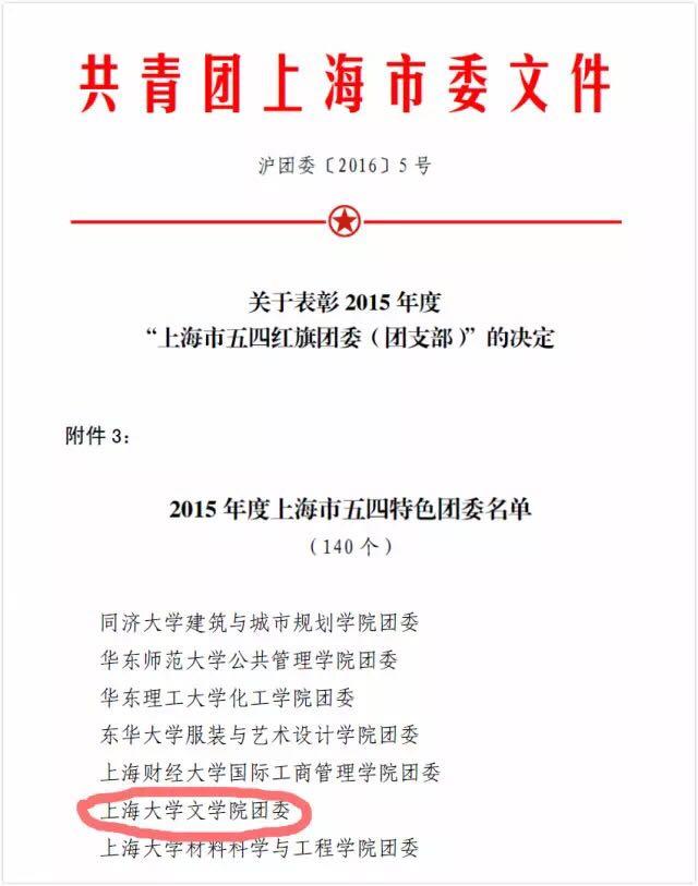由团市委主办的2015年度上海市五四特色团委创建单位评选活动结束,德赢ac米兰官方合作vwin文学院团委荣获“上海市五四特色团委”称号。