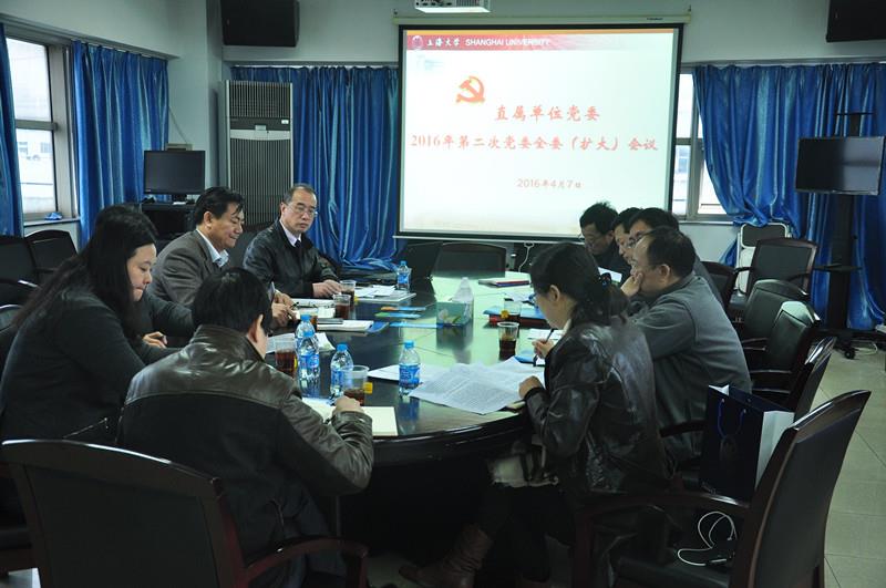 4月6日上午,直属单位党委在校本部D楼直属单位教工之家召开2016年第二次党委全体委员(扩大)会议。会议由直属单位党委书记陈志宏主持,直属单位党委委员及中心组成员参加了会议。
