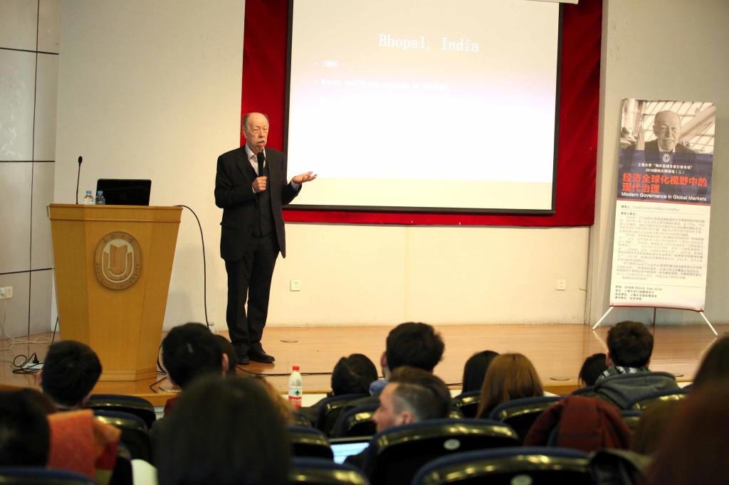 3月24日上午9点,德赢ac米兰官方合作vwin“海外高端专家引智专项”2016国际大师讲坛之(二)于校本部行政楼报告厅成功举行。来自英国德蒙福特大学莱斯特商学院的David Crowther教授为全校师生作了题为“经济全球化视野中的现代治理”的精彩学术报告。此次演讲由经济学院王红副教授主持,国际事务处倪兰副处长致辞,经济学院何树全教授,集思共利企业管理咨询上海有限公司端楚立经理以及六十多位德赢ac米兰官方合作vwin中外本科生与硕士生一同聆听了演讲。
