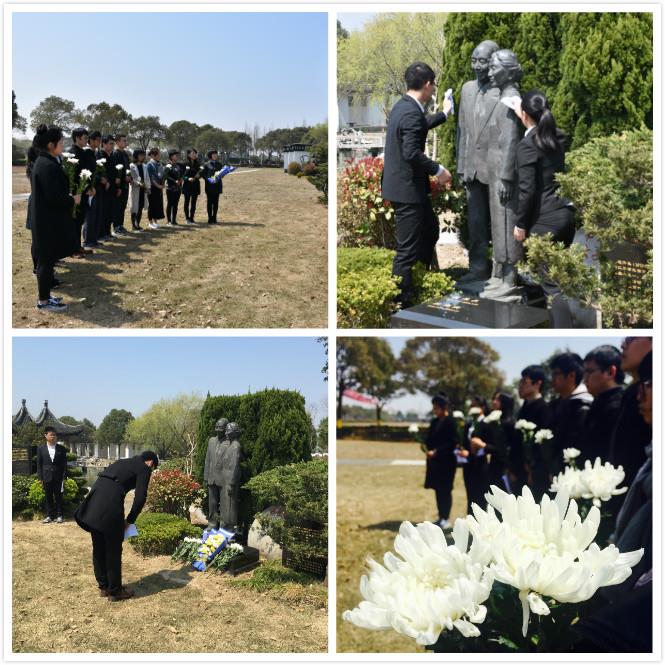 3月28日,清明将近,钱伟长学院直属党总支书记谢宝婷、直属党总支副书记韦淑珍、学院团委书记阮杜娟、学院党员教师代表苏英等教工党支部成员与12级毕业生代表、15级钱伟长教育思想学生宣讲团学生代表共同来到上海市奉贤区滨海古园,举行缅怀钱伟长老校长仪式。