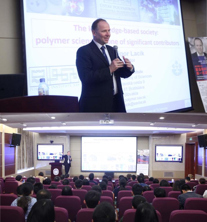 3月21日上午9点半,德赢ac米兰官方合作vwin“海外高端专家引智专项”2016国际大师讲坛之(一)于校本部乐乎新楼学海厅成功举行。来自斯洛伐克科学院聚合物研究院的Igor教授为在校师生作了题为“知识型社会:聚合物科学是一名重要的贡献者”的精彩学术报告。演讲由复合材料中心副主任李红副研究员主持,国际事务处倪兰副处长致辞,复合材料中心常务副主任任慕苏研究员、复合材料研究中心白瑞成副研究员、纳米科学与技术研究中心王金合副研究员和近百位上大学子出席本次学术讲座。