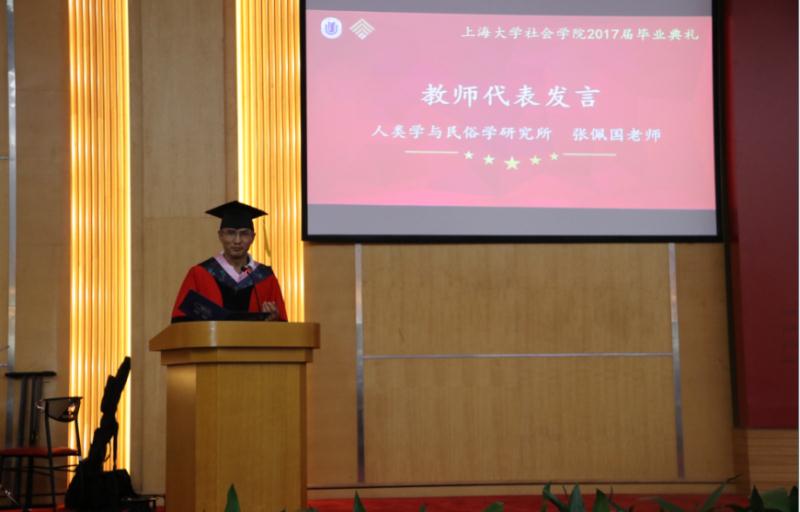 在教师视频里,老师们纷纷写下寄语,张江华教授的“成年人的生活不容易”更是给毕业生们留下了深刻的印象。教师代表张佩国教授的发言从自身经历谈起,启发毕业生思考如何面对未来的“坚守”。他告诫毕业生们坚守的核心要义在于自我实现,坚守是懂得取舍的心无旁骛,坚守意味着家园、理想、舍得和责任,只有懂得坚守,才能“有诗,还有远方”。
