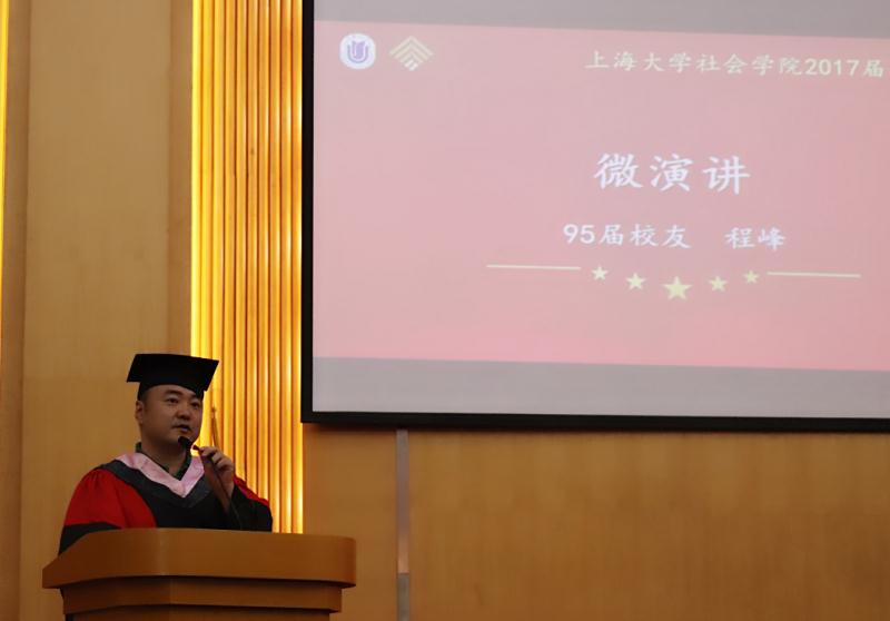 德赢ac米兰官方合作vwin社会学院校友分会副会长、资深媒体人程峰带来了题为《人生是场马拉松》的演讲,他启发毕业生思考人生的意义、怎样选择人生“跑道”、怎样心怀感恩地对待人生旅途的“陪跑者”、怎样面对人生的挑战与机遇等问题。勉励毕业生努力成为学院的光荣。