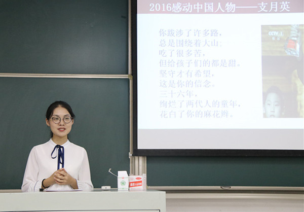 首先是学生党支部的微党课环节。第一小组黎清晰、陈沭颖同学介绍了感动中国人物支月英事迹及对汉硕学生的启示。她们结合自己的汉语教学经历以及海外实习生活将面临的困难,表示汉语国际教育任重道远,每一个汉语教师尤其是党员教师,更要保持初心,抱有使命感和责任感。第二小组王亚兰、胡清月通过庆祝香港回归祖国20周年系列活动谈了年轻党员如何做到不忘初心。她们表示只有坚定共产主义信仰,精神才有寄托,行动才有指南。她们带领现场全体党员观看了习主席检阅驻港部队视频。大家深感仪式感的必要性,同时表示会定期参加党组织活动,坚定信仰。