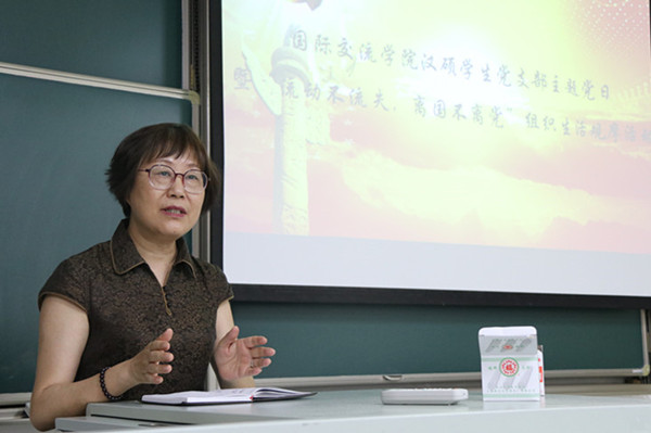 最后,院党委书记王海燕总结发言。王书记肯定了这次组织生活的圆满举办。她欣慰于汉硕学生这一年的成长,赞扬了学生党员表现出党的教育事业接班人的风采。今天支部组织生活的举办选在七七事变80周年的时刻,更激起全体党员的使命感。国之交在于民相亲,汉硕的工作更要具有责任感和使命感。