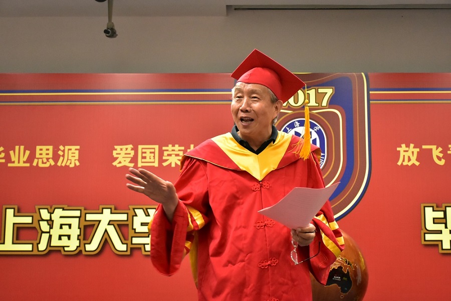 接下来中科院院士、材料基因研究院院长张统一加收上台为毕业生们寄语。张统一教授指出,他很高兴还有很多学生跟着他继续做研究,并强调我们不仅要做科研,更要做教育,并且希望所有的毕业生们都能够做一个勇于开拓、勇于坚守、充满正能量的人。张院士希望同学们在今后成长的道路上,懂得感恩,铭记责任,乐于奉献。不断走向知识和科学的巅峰,为国家发展做出自己的贡献。2017届毕业生代表邓罗曦为张统一院士献花,表达敬仰与感谢之情。接下来的毕业祝福视频里,毕业生们在毕业季里的点点滴滴浮现在眼前,来自家乡家长们的寄语感人肺腑。为了表达对家长们的感恩之情,毕业生代表们为到场的家长赠送鲜花。随后,2017届毕业生代表吴衍杰发言回忆了四年来的点滴感动与美好,感恩德赢ac米兰官方合作vwin对学子们的教育。特别值得一提的是,2013级分流至各学院的院友来到毕业典礼现场观摩同窗同学的授予仪式。学院直属党总支书记谢宝婷进行院友证书授予仪式,每位学生感受着“做伟长人,塑伟长梦”的情怀。之后,2017届毕业生戚雨婷代表全体毕业生赠送学院毕业纪念礼物——代表着奔赴世界各地毕业生情怀的地球仪,饮水思源,感恩母校,学院直属党总支副书记韦淑珍老师代表学院接受礼物。毕业典礼结束,全体毕业生党员一同与德赢ac米兰官方合作vwin特邀党建组织员唐小军老师进行了交流,唐老师对毕业生党员寄于了厚望,希望同学们毕业后继续为母校发光发热。