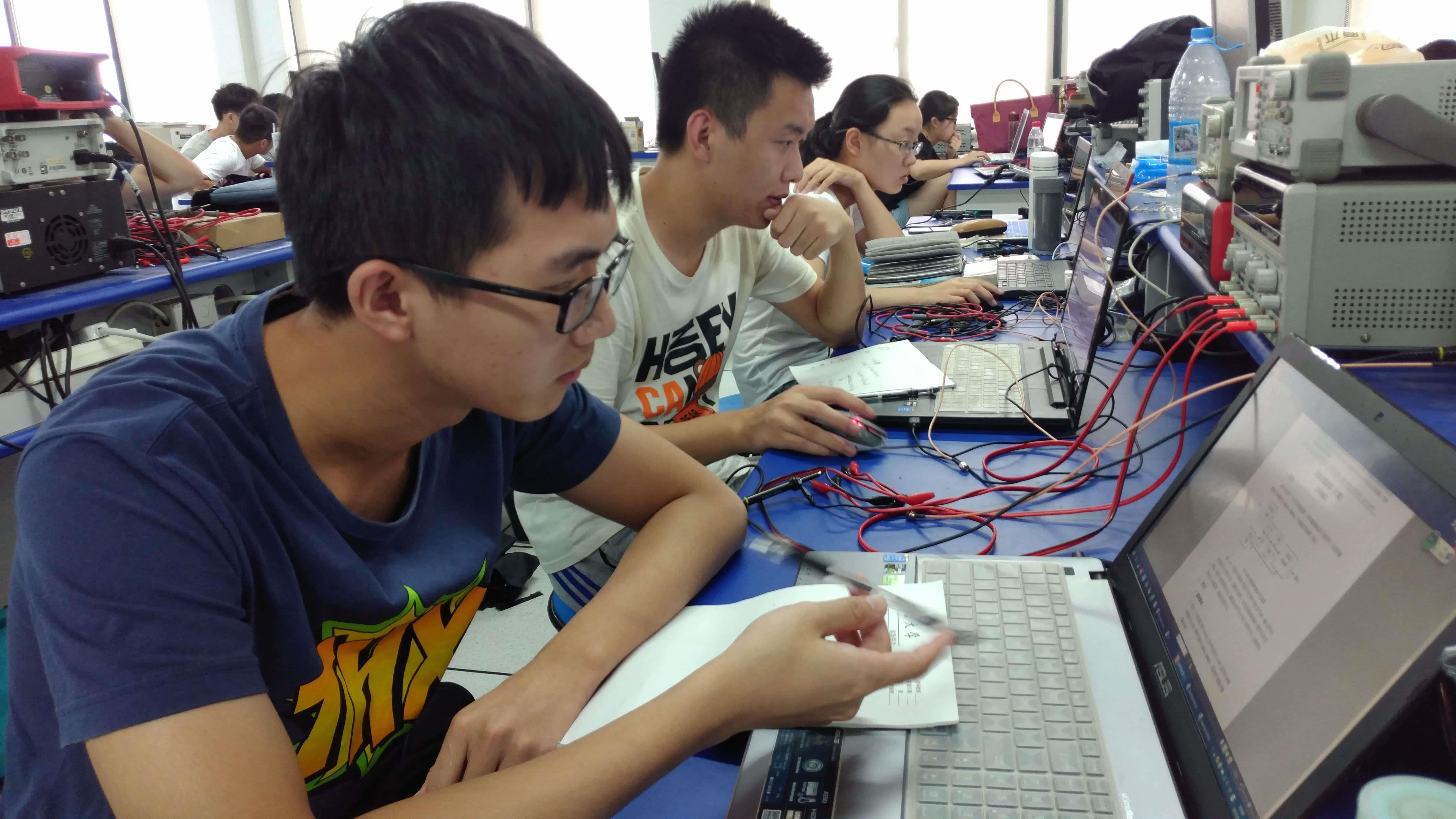 为了赛出优异的成绩,暑假期间,在上海的历史高温之下,指导教师、参赛学生不辞辛苦,顶着炎炎烈日,在实验室积极备战,熟悉测量、高频、电源等方面的小功能模块。公布竞赛课题后,参赛同学开始投入到竞赛中,集思广益,提出了各种方案,各指导老师也认真研究竞赛课题。通信学院执行院长王廷云,党委书记黄素娟、副书记胡乾源等前往竞赛一线,了解同学们的竞赛进展情况。同时,通信学院积极筹备好竞赛的各项后勤保障工作,师生共同努力,为参赛同学提供各项服务。