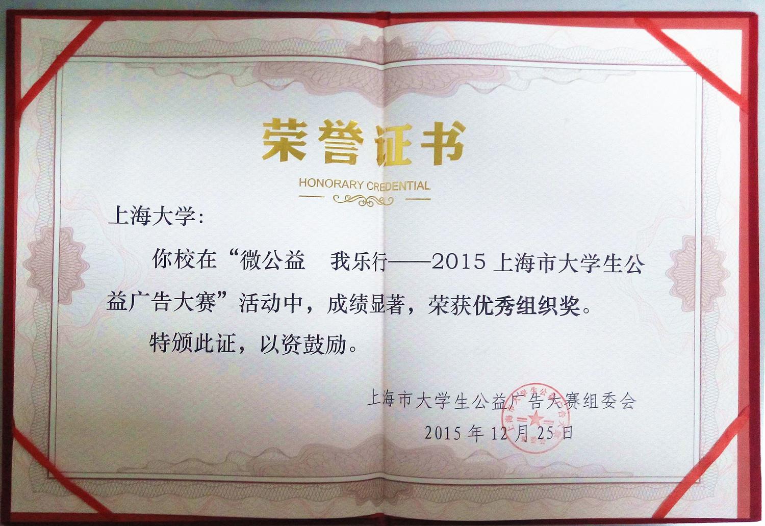 近日,由上海市文明办、上海市教卫工作党委、上海市教委主办,同济大学承办的“微公益 我乐行”2015上海市大学生公益广告大赛颁奖晚会在同济大学举行。德赢官网在此次大赛中荣获“优秀组织奖”,多名大学生在平面类、视频类作品中获奖,德赢官网教师也荣获“优秀指导老师”。