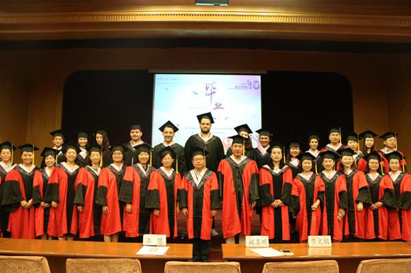 姚喜明院长首先代表学院致辞,姚院长通过“大禹治水”、“精卫填海”、“愚公移山”等大家耳熟能详的故事,深入浅出地向同学们阐述了中华民族从古至今代代相承的勤勉、坚韧等传统美德,他希望这种不畏艰难、自强不息的精神也能激励着各位毕业生,在今后的人生道路上努力奋斗,运用在德赢ac米兰官方合作vwin所学的知识和技能,为祖国的和平、繁荣与发展,为构建中外人民的友谊之桥贡献自己的力量。