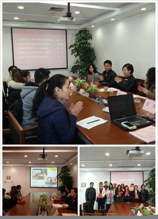 第十七届中国上海国际艺术节已于11月16日圆满落幕,艺术节后期的总结工作也在有条不紊的进行。本届国际艺术节志愿者大会总结表彰大会于12月3日上午在德赢官网外国语学院C512会议室召开。上海国际艺术节中心党总支副书记杨靖、外国语学院党委副书记王国建等老师与部分志愿者代表出席,现场气氛温馨融洽。
