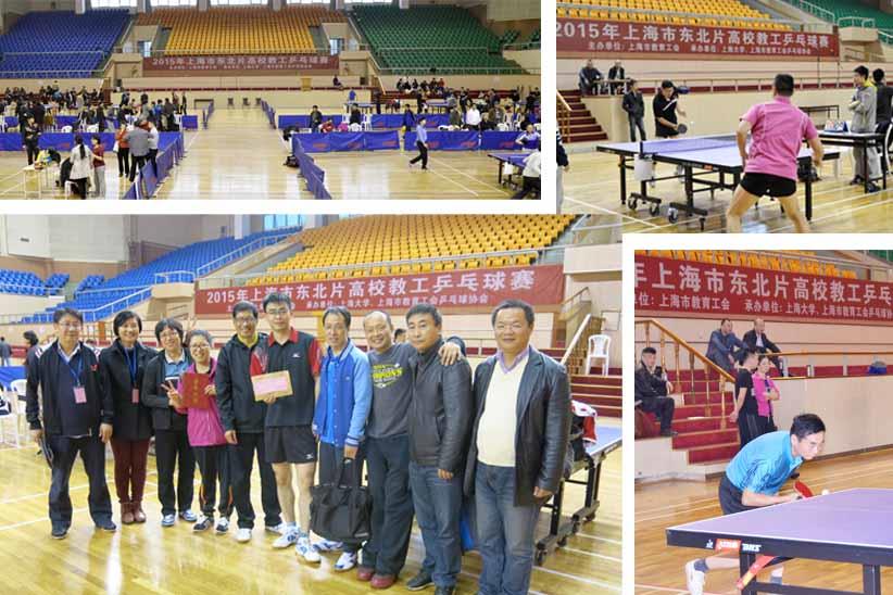 2015年上海市东北片高校教工乒乓球赛于11 月21日在德赢官网宝山校区体育馆举行。本次比赛由市教育工会主办,市教育工会乒乓球协会、德赢ac米兰官方合作vwin承办。共有来自包括复旦、同济、上大、财大、海事、电力等高校在内的22家单位报名参赛。校工会常务副主席顾红,副主席翁新楚、吕晓军对兄弟院校运动员的到来表示了热烈欢迎。