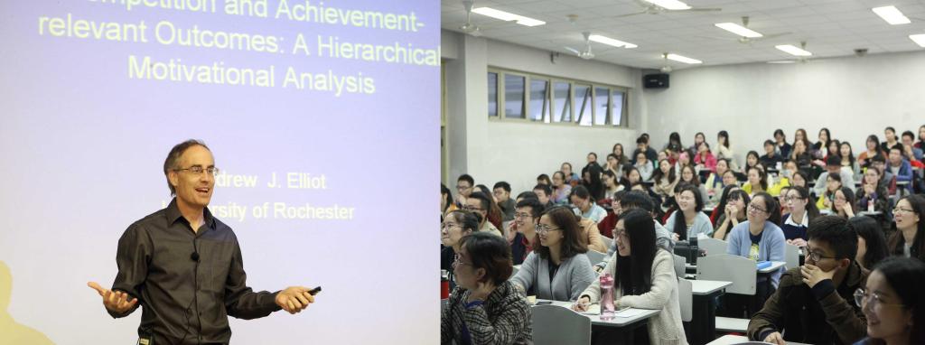 11月18日上午9点,德赢ac米兰官方合作vwin“海外高端专家引智专项”2015国际大师讲坛之(九)于宝山校区B楼J103成功举行。著名心理学家、美国罗切斯特大学的Andrew J. Elliot教授为在座师生作了题为“竞争与个人成就:一个层级动机分析架构”的精彩学术报告。演讲由管理学院张昊民教授主持,国际事务处倪兰副处长致辞,来自管理学院、经济学院、社区学院、国交学院的150多位师生参加了此次讲座。