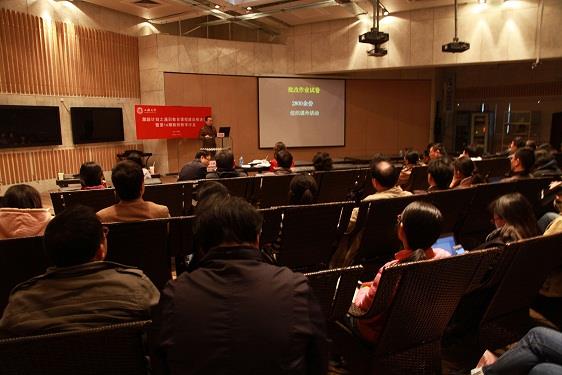 辛明军老师结合PPT,为大家做了“通识教育教学改革评价方式”的发言。辛老师首先讲了通识类课程评价模式与考评结果,他以14-15学年课堂教学考评结果为例进行分析,调查通识课同行评价结果及同行评价与学生评教结果对比,指出目前存在的主要问题并对下一步的工作提出建议。