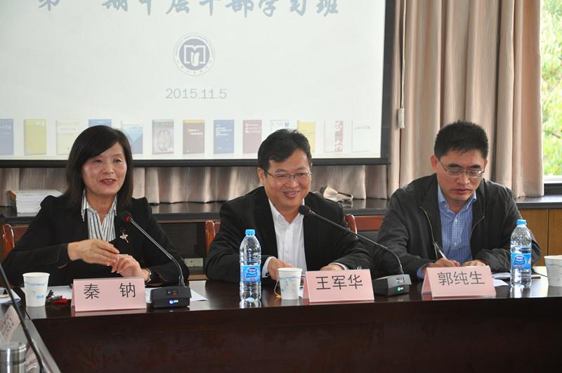 学习班由期刊社社长秦钠同志主持。出版社党委书记郭纯生同志代表出版社党委致辞,对全体学员提出了六点要求:一是要充分认识编辑部队伍建设的重要性;二是各刊要对主动对接学校高峰高原学科建设;三是作为第一线把关人要坚持正确的舆论导向,把社会效益放在首位;四是要全面提升办刊质量和业务能力;五是要努力提升自身管理能力;六是要加强自身修养,维护期刊良好形象。王军华同志从组织建设、人才培养、学科布局、科学研究、人才队伍、校园建设等几个方面全方位介绍学校近期的基本情况和重点工作。他指出,期刊社的发展离不开中层干部队伍的建设,并围绕着“思想建设”、“能力建设”、“制度建设”和“党的建设”四个方面深入阐述如何做好中层干部,寄语学员们用“努力和实力”对重点工作“咬紧不放”,“主动对接”和服务学校中心工作和学科发展。秦钠同志代表期刊社感谢王军华同志带来的精心制作的“精神大餐”和出版社党委对此项工作的大力支持,认为期刊社13刊每种都是德赢ac米兰官方合作vwin的一张名片,而编辑部主任不仅要担当好主编的行政助理、编辑部的枢纽,更要整合优势为学校的学科建设服务,为上海的繁荣发展助力。