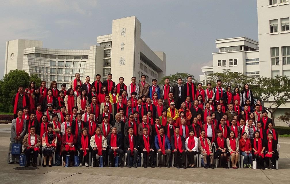 随后,在志愿者的带领下,校友们前往J102参加学院的主题院会。上午10时,“文院情·同窗谊”主题院会正式开始,文学院常务副院长张勇安向校友们致欢迎词并作了文学院院情报告,文学院的巨大发展也让昔日学子感到骄傲与自豪。85届、95届、05届校友代表分别致辞,言语中饱含着对母校的怀念与感激。更是有任课老师发言,勾起了校友们的校园记忆。表演环节中,含蓄隽永的《致橡树》诗朗诵、纯真清新的《同桌的你》吉他弹唱、05届校友们集体合唱当年军训曾唱过的《情非得已》,代表着每个年代的文艺表演将大家带回过去的时光。此外文学院还为校友们准备一份神秘惊喜——每位校友的成绩单,文学院党委书记竺剑代表学院向校友代表送上这份礼物,让校友们感动不已。院会结束后,所有在场院领导、任课老师、校友们一起合影留念。