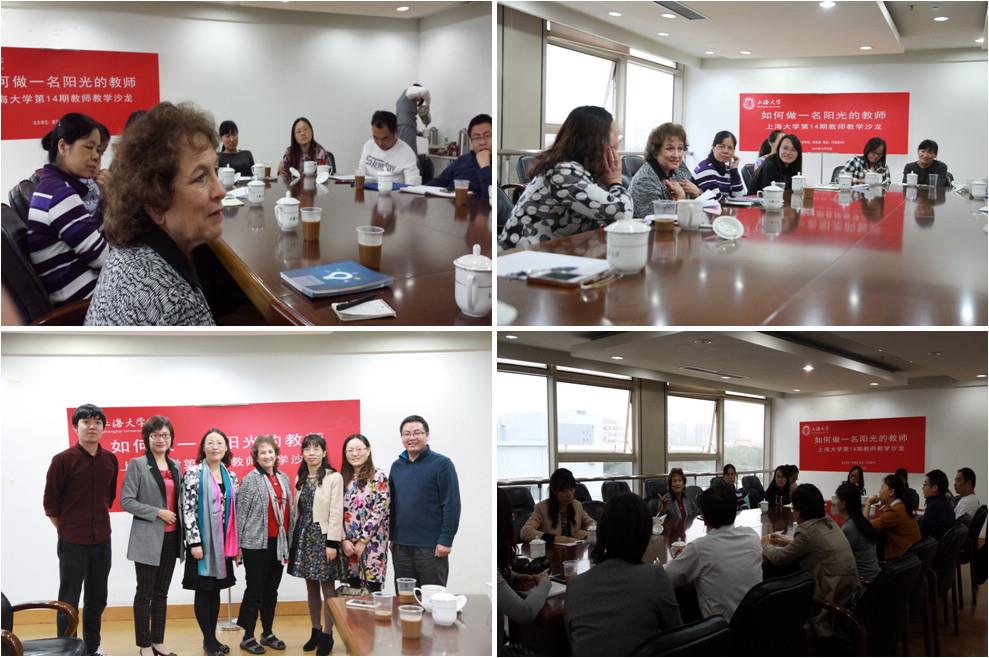 10月28日下午,德赢官网举办第14期教师教学沙龙。美国心理学专家Caroles.light博士来德赢官网与部分青年教师就“如何做一名阳光的教师”主题展开热烈互动。沙龙由教务处副处长顾晓英主持,来自心理辅导中心、悉尼工商学院、国交学院、影视学院、文学院等院系的20余名教师参与。