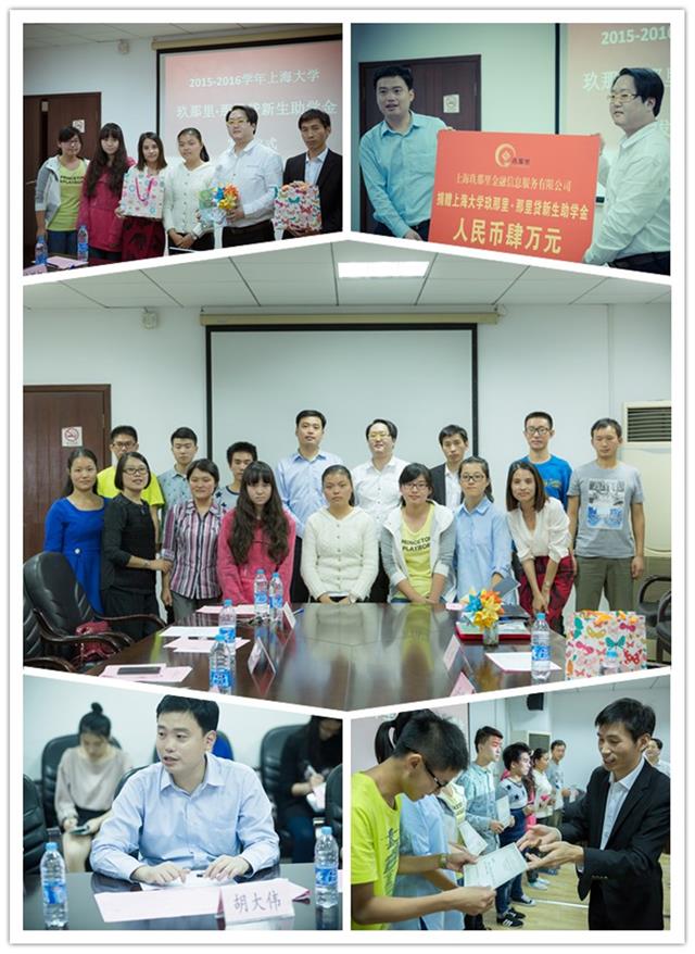 10月16日下午,“玖那里·那里贷”新生助学金发放仪式在德赢ac米兰官方合作vwin校本部A404顺利召开。上海玖那里金融信息服务有限公司总经理赵炤,公司代表易丽娟女士、青涛先生,德赢ac米兰官方合作vwin学工办主任胡大伟、副主任吴蔚,以及接受资助的9名家庭经济困难新生出席了本次会议,校学工办成才服务中心沈佩红老师担任本次主持。