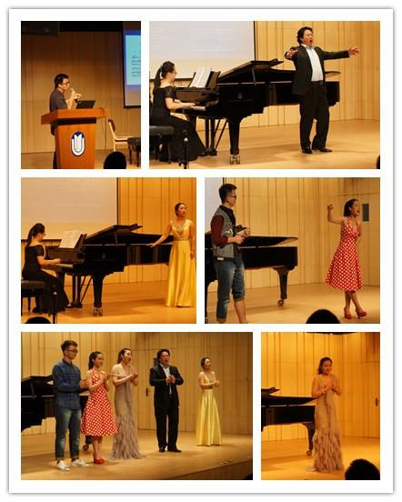 本次音乐会由音乐学院副教授阳军担任主讲人、音乐学院副教授常沁怡担任伴奏,李建林教授特邀女高音(校友)李梦石、以及他的一年级研究生徐靖、三年级本科生季方庭、杨笑谈共同演绎了十二首中外名曲。阳军老师的讲解细致入微,以何为声乐为题引发了自己对于声乐的一些看法,而后对美声唱法、民族唱法、民美唱法以及通俗唱法都作了相关介绍,随后在第二板块中介绍了美声声部的划分并结合谱例作了详细的阐述。在第三板块中他对十二首名曲进行了概述,不仅对每首名曲的歌剧出处作了详细的讲解,还对每首歌最难唱的部分有细致的分析。