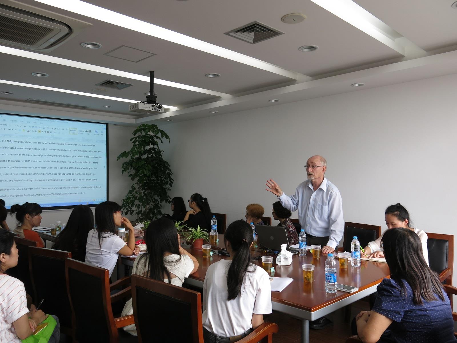 随后,师生们与贝克教授就简·奥斯丁作品的相关主题进行了热情互动。对于在场听众提出的问题,贝克教授别出心裁、幽默诙谐地一一作了详细解答,现场气氛严肃而不失活泼,使在座师生收益良多。讲座最后,朱洁副教授做了简短的总结,并再一次表示对贝克教授的感谢。此次讲座挖掘了简·奥斯丁作品主题内涵,加深了我们对简·奥斯丁及其作品的认识,有助于培养听众对英国十九世纪文学的欣赏水平。
