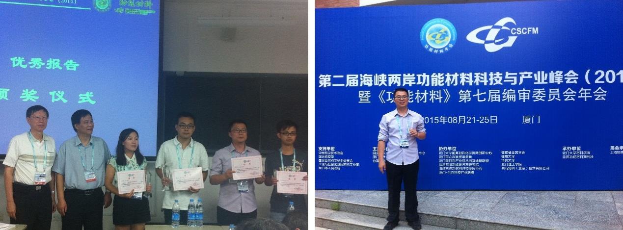 2015年8月21-25日,第二届海峡两岸功能材料科技与产业峰会(2015)曁《功能材料》第七届编审专家年会在福建厦门举行。德赢官网材料科学与工程学院老师受邀参加,在材料学院施鹰教授和谢建军教授的指导下,该院电子信息材料系学生张晓欣代表德赢ac米兰官方合作vwin参加,并作报告,汇报德赢官网近年来在稀土功能材料方面取得的研究进展,并最终喜获“优秀报告奖”。