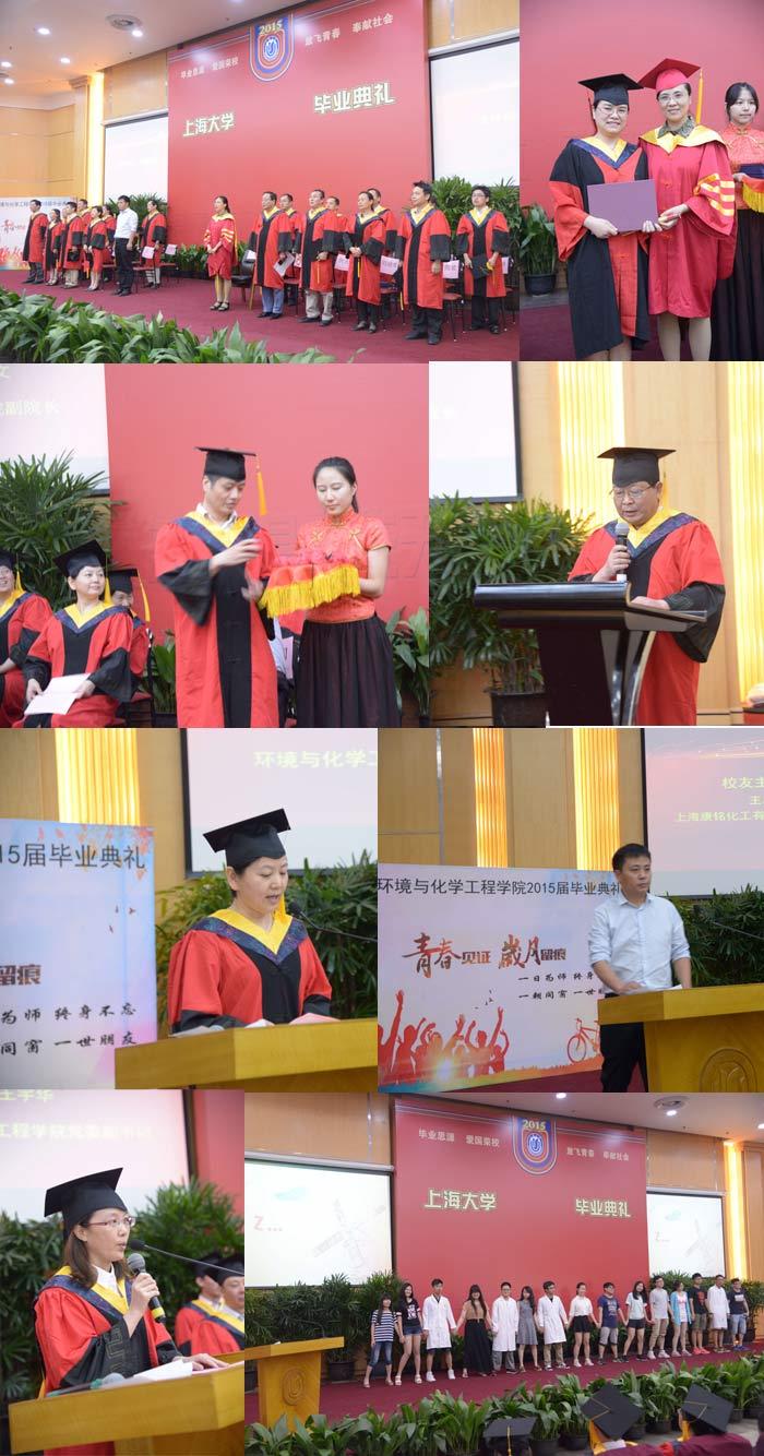 7月3日下午2点,环化学院2015届毕业生毕业典礼于校本部图书馆报告厅隆重举行。出席毕业典礼的领导和嘉宾有:德赢ac米兰官方合作vwin党委常委、副校长、研究生院院长、校学位委员会委员吴明红教授,99级校友、上海康铭化工有限公司董事长王二国先生,学院党政领导、专业教师、家长代表及全体毕业生。