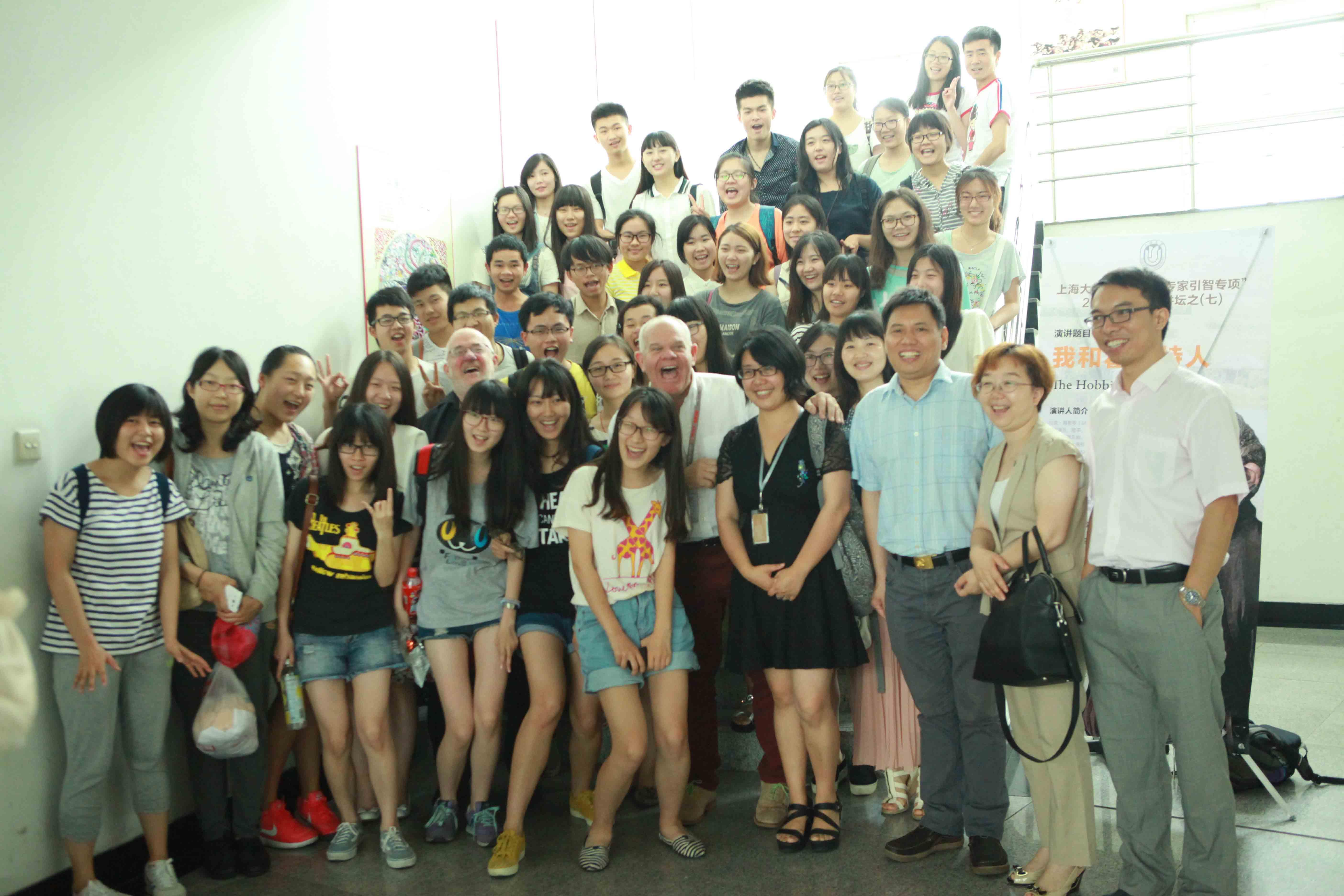 Mark Hadlow先生曾在《霍比特人》系列中扮演矮人朵力(Dori)一角。他以“The Hobbit and Me”(我与霍比特人)为名,从一个演员的角度出发,向老师及同学们介绍了演员事业的易与难,并与大家分享他演艺生涯中遇到过的各类事件,以及他对于表演的看法。Mark Hadlow先生语重心长的表示,不管学什么专业或将来从事什么工作,只要心中有梦,充满激情,坚持不懈,终将会获得成功。Mark Hadlow的演讲极具感染力,期间穿插表演其曾经塑造过的角色,时而声如洪钟、回音绕梁,时而婀娜多姿、妩媚动人,赢得在场师生的阵阵掌声。