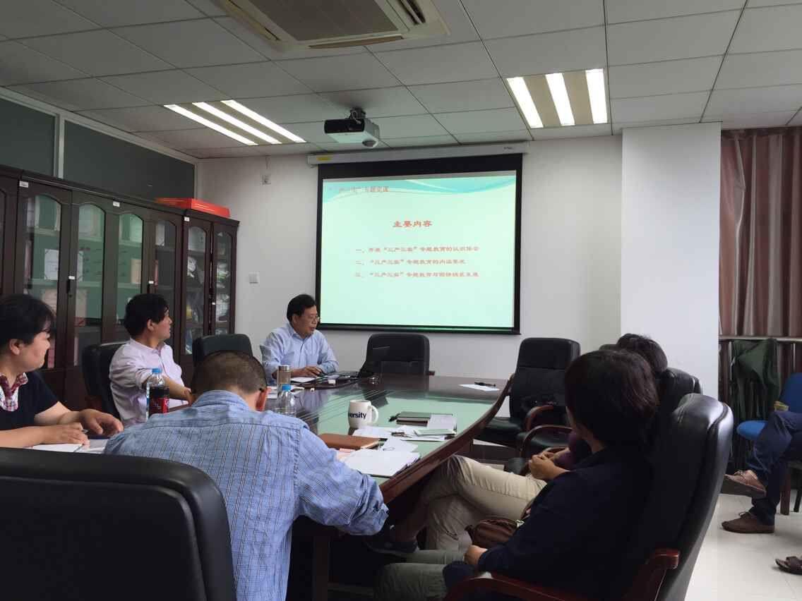 5月29日下午,图情档系在东区国商楼449A召开了“三严三实”专题教育党课。系党委书记丁华东教授讲专题党课,系党政领导班子成员、所有教工党员参加了会议。