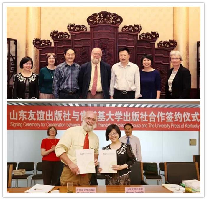 2015年5月22日,美国肯塔基大学孔子学院院长修华静博士带领美国肯塔基大学代表团一行4人访问了山东友谊出版社。访华团成员包括肯塔基大学出版社社长Stephen Michael Wrinn先生、肯塔基大学图书馆常务副馆长Mary Beth Thomson女士、肯塔基大学图书馆采编部主任Catherine Patricia Seago女士等。山东出版集团总编辑迟云会见了肯塔基大学代表团一行。
