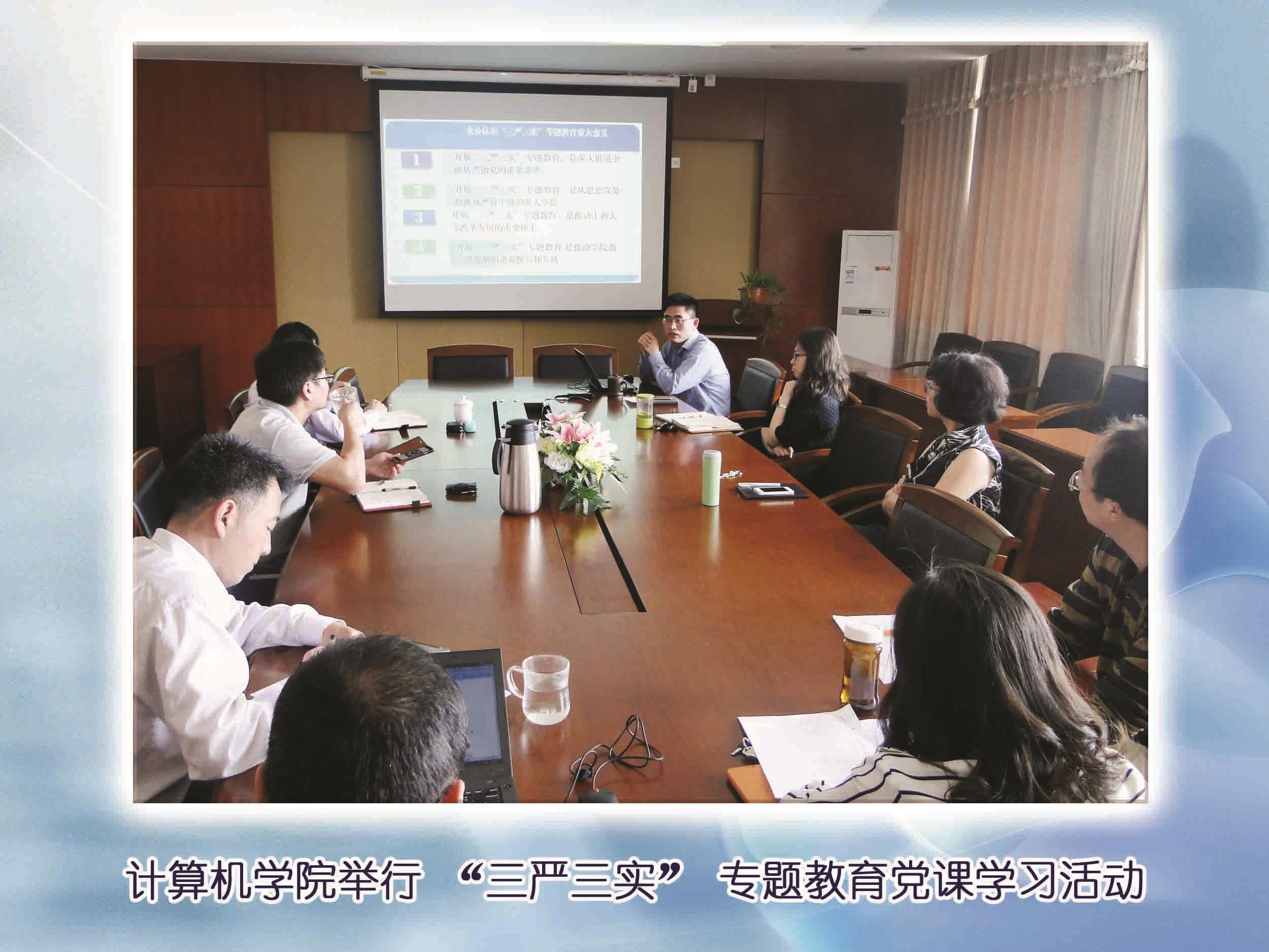 近期,全校正式启动了“三严三实”专题教育活动,按照德赢ac米兰官方合作vwin党委印发《关于在德赢官网处级以上领导干部中开展“三严三实”专题教育的实施方案》的通知要求,计算机学院详细部署安排了学院“三严三实”专题教育的实施计划和步骤。6月1日上午,学院党委书记郭纯生做了题为《以“三严三实”专题教育为契机,用实际行动推动计算机学院发展》的专题党课,正式启动计算机学院“三严三实”教育活动。专题党课参与人员有学院党政班子成员、党委委员、支部书记、学科带头人、民主党派代表、教师代表、学生代表。
