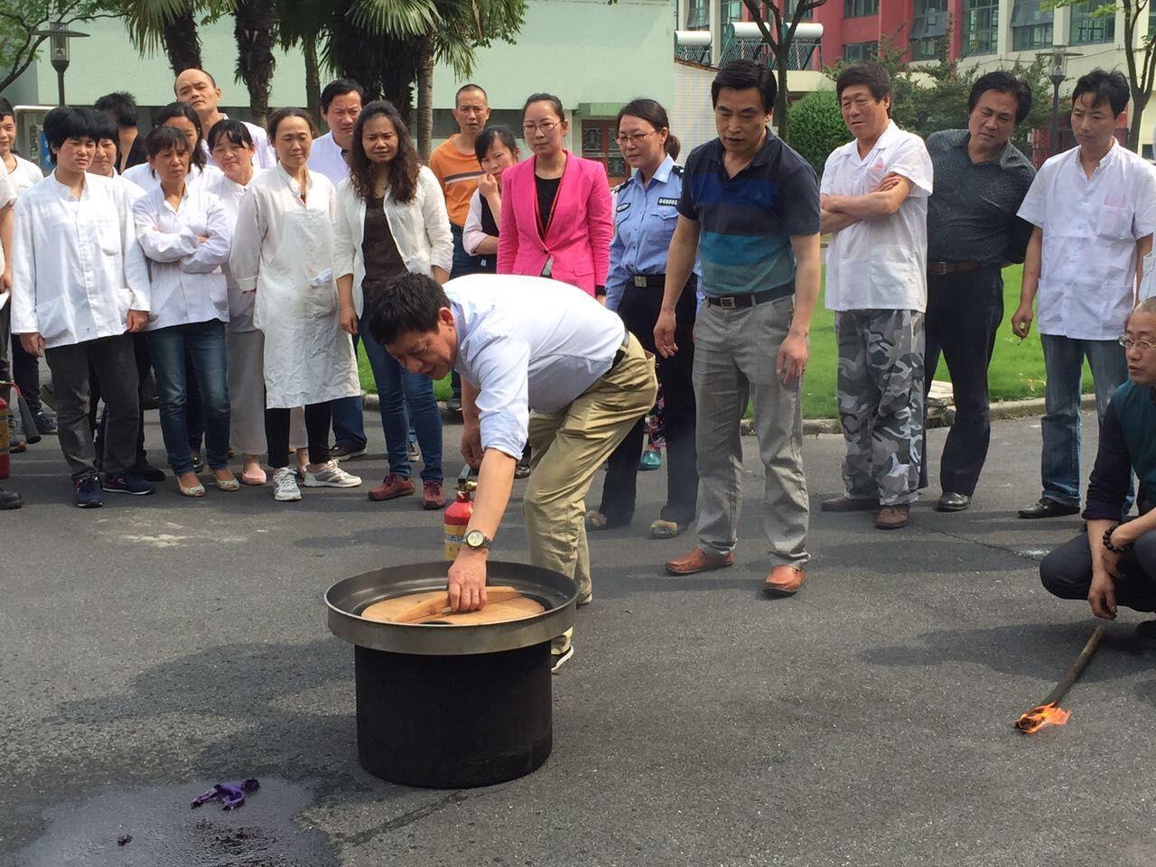 5月14日下午,保卫处(嘉定校区)联合后勤集团膳食科为嘉定校区食堂工作人员做消防安全培训,并组织灭火演练,嘉定公安分局高校派出所谢佩君警官应邀参加。