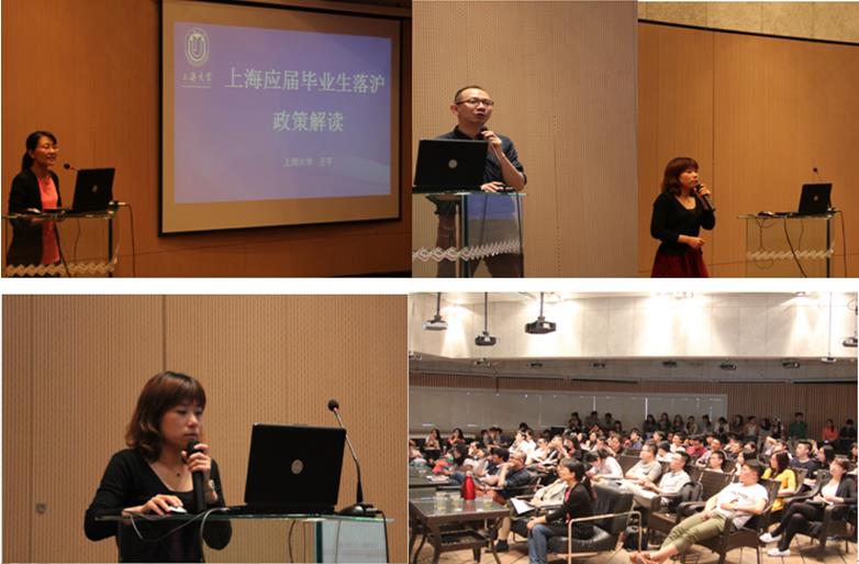 会议由美术学院学生办公室主任孙玉兰老师主持,讲座开场之前,美术学院研究生党总支书记王岭山老师鼓励2015届毕业生抓住就业机会,把握好落户申请的时间节点;同时强调,如果申请落户不成功,也可以办理上海市人才居住证,缓解了部分学生的紧张情绪。