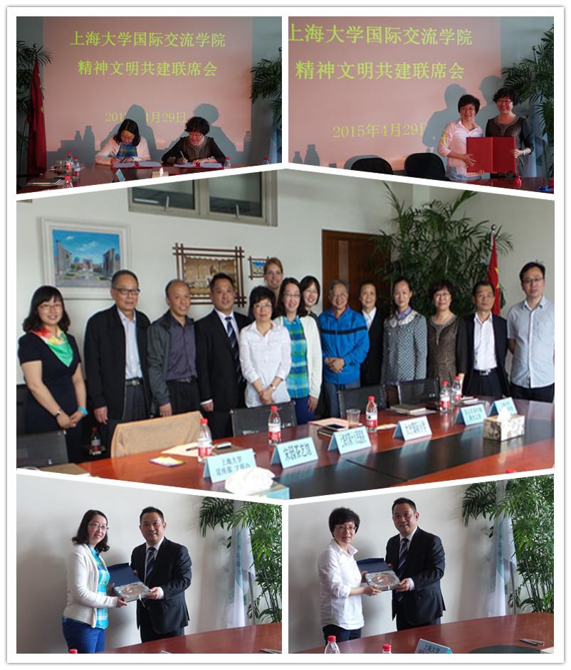2015年4月29日上午,以德赢ac米兰官方合作vwin第三届国际文化节开幕式暨第九届国际文化风情节为契机,国际交流学院于新校区E楼6楼会议室召开了精神文明共建联席会。应邀参加的有校宣传部李坚部长以及第十人民医院、庙行镇阳光家园、大宁国际小学、宋园茶艺馆等四家共建单位负责人。国际交流学院院领导也悉数出席。会议由国际交流学院曾桂娥副院长主持。