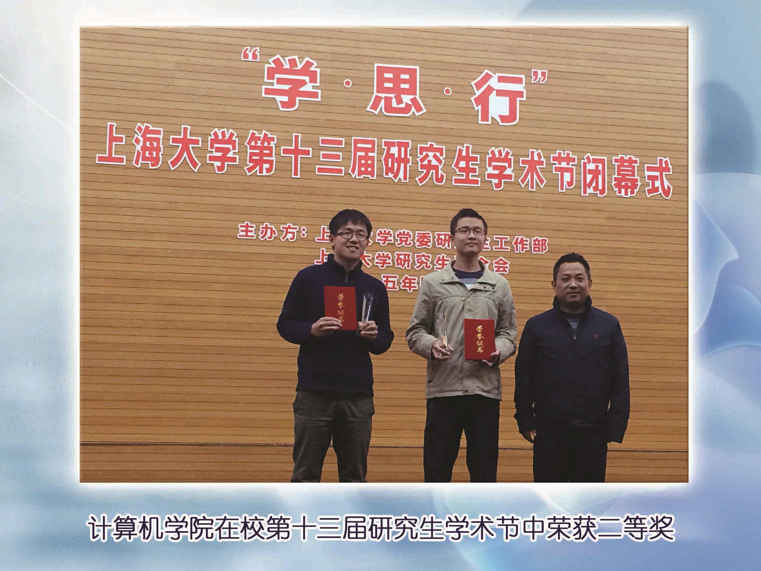 2015年4月14日18:00,德赢ac米兰官方合作vwin第十三届研究生学术节在德赢ac米兰官方合作vwin图书馆报告厅圆满闭幕。计算机学院在本次研究生学术节中以全校第三名的优异成绩,荣获二等奖的佳绩,校党委宣传部部长李坚老师为我院学生代表颁奖。