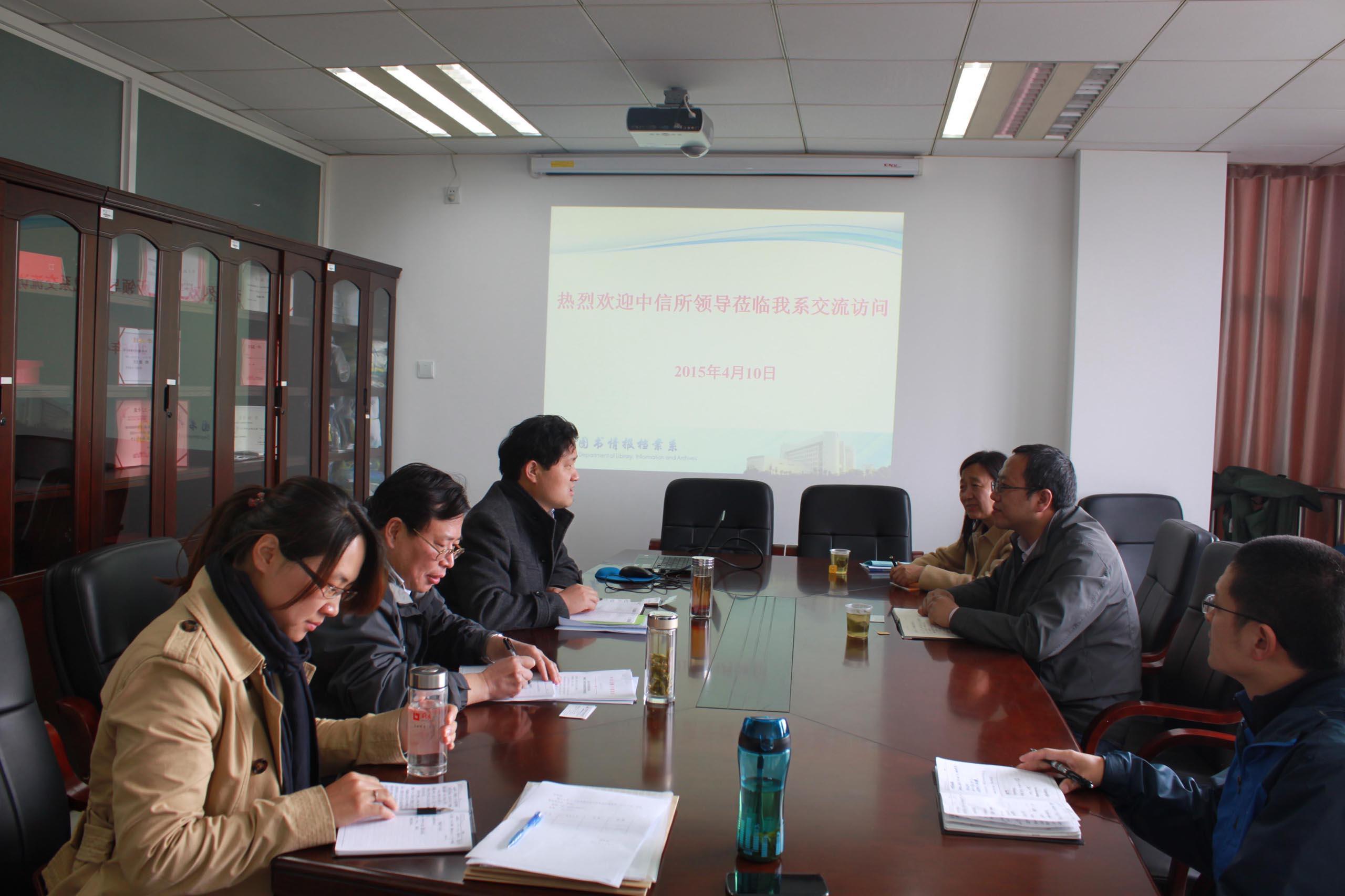 金波主任首先介绍了德赢ac米兰官方合作vwin图书情报档案系的师资队伍、专业设置、学生结构以及研究生招生数量、培养方案、课程设置、就业去向和实践基地等情况,丁华东书记具体补充了研究生复试、心理考核、培养管理等情况。随后,张泽玉主任介绍了中国科学技术信息研究所研究生招生、课程设置、教育管理、就业去向等基本情况,并提出了其在招生面试、课程体系设置和实践基地建设等方面遇到的具体问题。最后,双方就张主任提出的问题以及实践教学、人才培养、学生就业等共同关心的话题进行了广泛讨论,并表示今后要进一步加强相关的联系和交流。