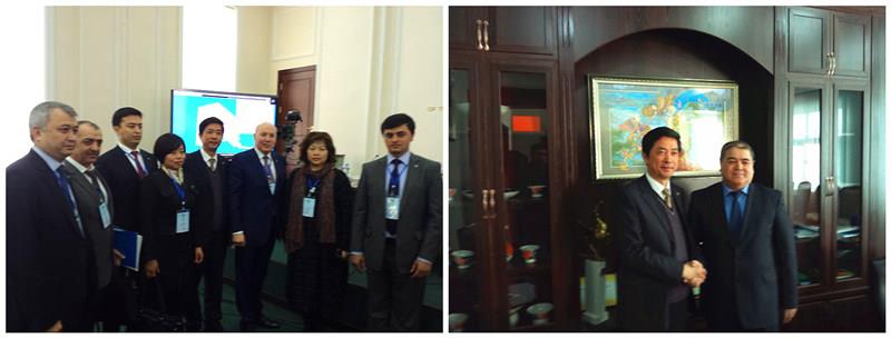 27日,代表团访问塔什干国立信息技术大学,该大学是中亚地区唯一一所培养高层次信息和通讯技术人才的高校,中国华为技术公司塔什干子公司与该大学在“The Telecom Seed for the Future”规划框架下签署过合作协议。乌信息通讯部副部长、Мухитдинов Хаким校长,Синдаров Шерзон第一副校长和Хакимов Зафор副校长接见了代表团一行,双方就未来合作方向交换了意见。随后李伟和张丹华在电子通讯系为大学生发表“传承丝路文化 共铸美好未来”的主题演讲,演讲内容引起学生强烈共鸣、赢得学生热烈掌声。随后,访问塔什干国立经济大学,该大学与德赢ac米兰官方合作vwin于2013年5月共建成立乌兹别克斯坦研究与教育交流中心并签署合作协议。代表团与校长Макхмудзен волтаваев、外事处主任古·卡里耶娃和副主任乌斯曼商讨了教师交流和互换学生的计划。