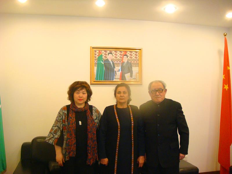 2015年3月4日上午,土库曼斯坦驻华大使鲁斯捷莫娃女士在土库曼斯坦大使馆亲切接见了专门赴京拜会的德赢官网公共外交研究院副院长张丹华教授。中国中亚友好协会顾问、中央民族大学少数民族语言文学学院胡振华教授参与了会谈。
