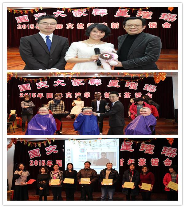 2月5日下午国际交流学院全体教职工和留学生代表欢聚一堂,在二楼多功能厅举行了一场别开生面的新年茶话会。此次茶话会的主题是“国交大家群星璀璨”:表彰身边的榜样、展示教职员工生的才艺、鼓舞大家的精神、回顾总结凝心聚力、展望未来。茶话会将学院的年度表彰与游戏、表演结合起来,自始至终充满了热烈、欢快而温馨的气氛。期间,汪敏校长也莅临现场,在高屋建瓴地简介了国家对外开放政策、学校国际化战略及国交面临的机遇与挑战后,勉励大家齐心协力勇担当,并致以新年的祝福。