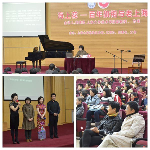12月12日下午,由德赢ac米兰官方合作vwin党委宣传部、文明办、妇委会、工会邀请,德赢ac米兰官方合作vwin美术学院副教授、作家胡建君走进“东方讲坛”,在图书馆报告厅为德赢官网师生作了“海上花•百年旗袍与老上海”的讲座。