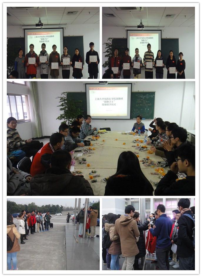 12月19日下午4:00,钱伟长学院国旗班“国旗卫士”荣誉授予仪式在校本部D507室成功举行。钱伟长学院国旗班20余名同学参加了此次荣誉授予仪式。授予仪式由钱伟长学院兼职辅导员李骥主持,钱伟长学院直属党总支副书记徐晓夏和总支委员阮杜娟出席授予仪式。 授予仪式上,首先国旗班同学学习了《国旗法》,明确了身为“国旗卫士”,了解和遵守《国旗法》的重要性。随后,根据德赢ac米兰官方合作vwin的实际情况,李骥针对国旗升降的注意事项进行了一一讲解,提醒同学们注意国旗升降的时间、着装、交接等问题。在聆听讲解的同时,同学们也积极地记录下老师强调的事项,并提出了自己困惑的问题,得到了老师的解答。荣誉授予仪式是整个仪式最重要的部分,钱伟长学院“国旗班”名单正式公布,徐晓夏和阮杜娟为国旗班同学颁发了荣誉证书,授予国旗班全体同学“国旗卫士”荣誉称号。最后,老师与同学们一同前往行政楼前国旗下,现场演示和学习了升降国旗,为授予仪式画上了圆满的句号。 钱伟长学院自2007年开始承担德赢ac米兰官方合作vwin国旗升降的神圣使命。7年以来除寒暑假外的每天,同学们轮值负责行政楼前国旗升降。身为德赢ac米兰官方合作vwin钱伟长学院国旗班成员,每一个同学都感到万分光荣,同时也清楚地知道这是一项光荣神圣的使命。国旗代表的是整个中华民族的灵魂,国旗代表着庄严,肃穆,作为国旗班的同学,钱伟长学院同学将一如既往,怀着对国旗的一份敬畏,做好国旗班这份工作。 |