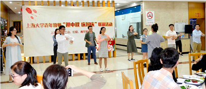 今年的联谊活动保留了传统的一些好的做法,比如依然有朗诵、独唱、拉丁舞等丰富多彩的节目,有激动人心的抽奖环节,还有印有上大LOGO的专属月饼糕点。与往年不同的是,主办方邀请了基础教育集团成员学校的同事们前来参加活动。基础教育集团的老师们带来了他们的表演,展示了他们的多才多艺,丰富了联谊活动的内容。