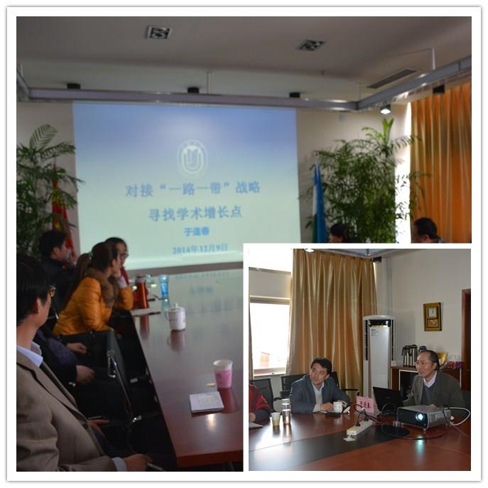 2014年12月9日下午,社会发展研究院特邀德赢ac米兰官方合作vwin特聘教授、中国社会科学院博士生导师于逢春教授莅临“面向需求,面向问题”第七期文科研究中心交流培训会,以《对接“一路一带”战略,寻找学科新增长点》为主题与学校各文科科研中心代表和有志于寻求学科突破点的师生进行研讨。培训会由社会发展研究院张恒龙院长主持,经济学院、悉尼工商学院、外语学院、社会科学学院、上海合作组织公共外交研究院、上海会展研究院等多家科研中心代表和博士、硕士研究生出席培训会。
